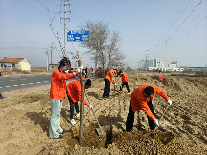 陽春三月,寒意雖未全部褪去,但春天的腳步已經悄悄走來。3月12日,是一年一度的植樹節。為了增強大家保護環境的意識、激發愛林造林的熱情,為濱海大地增添更多的綠色,支部在中外合作產業園黨委倡議下組織黨員進行義務植樹主題黨日活動。大家在分配的區域內,在綠化園林相關人員的指引和指導下,有的刨坑、有的扶正、有的填土、有的壓實、有的澆水,最終在大家的通力合作下,圓滿完成了植樹任務。